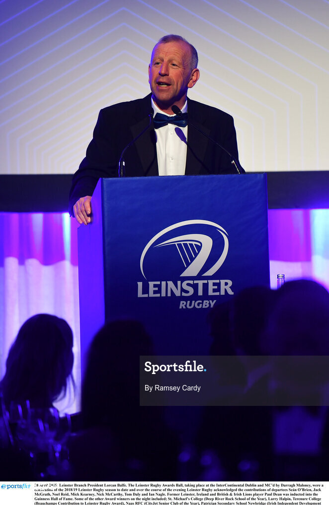 28 April 2019; Leinster Branch President Lorcan Balfe. The Leinster Rugby Awards Ball, taking place at the InterContinental Dublin and MC’d by Darragh Maloney, were a celebration of the 2018/19 Leinster Rugby season to date and over the course of the evening Leinster Rugby acknowledged the contributions of departees Seán O’Brien, Jack McGrath, Noel Reid, Mick Kearney, Nick McCarthy, Tom Daly and Ian Nagle. Former Leinster, Ireland and British & Irish Lions player Paul Dean was inducted into the Guinness Hall of Fame. Some of the other Award winners on the night included; St. Michael’s College (Deep River Rock School of the Year), Larry Halpin, Terenure College (Beauchamps Contribution to Leinster Rugby Award), Naas RFC (CityJet Senior Club of the Year), Patrician Secondary School Newbridge (Irish Independent Development School of the Year Award), Suttonians RFC (Bank of Ireland Junior Club of the Year) and Sene Naoupu (Energia Women’s Rugby Award). Photo by Ramsey Cardy/Sportsfile
