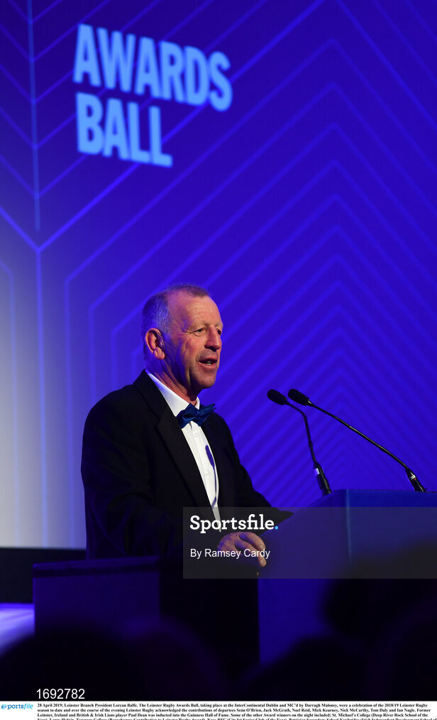 28 April 2019; Leinster Branch President Lorcan Balfe. The Leinster Rugby Awards Ball, taking place at the InterContinental Dublin and MC’d by Darragh Maloney, were a celebration of the 2018/19 Leinster Rugby season to date and over the course of the evening Leinster Rugby acknowledged the contributions of departees Seán O’Brien, Jack McGrath, Noel Reid, Mick Kearney, Nick McCarthy, Tom Daly and Ian Nagle. Former Leinster, Ireland and British & Irish Lions player Paul Dean was inducted into the Guinness Hall of Fame. Some of the other Award winners on the night included; St. Michael’s College (Deep River Rock School of the Year), Larry Halpin, Terenure College (Beauchamps Contribution to Leinster Rugby Award), Naas RFC (CityJet Senior Club of the Year), Patrician Secondary School Newbridge (Irish Independent Development School of the Year Award), Suttonians RFC (Bank of Ireland Junior Club of the Year) and Sene Naoupu (Energia Women’s Rugby Award). Photo by Ramsey Cardy/Sportsfile