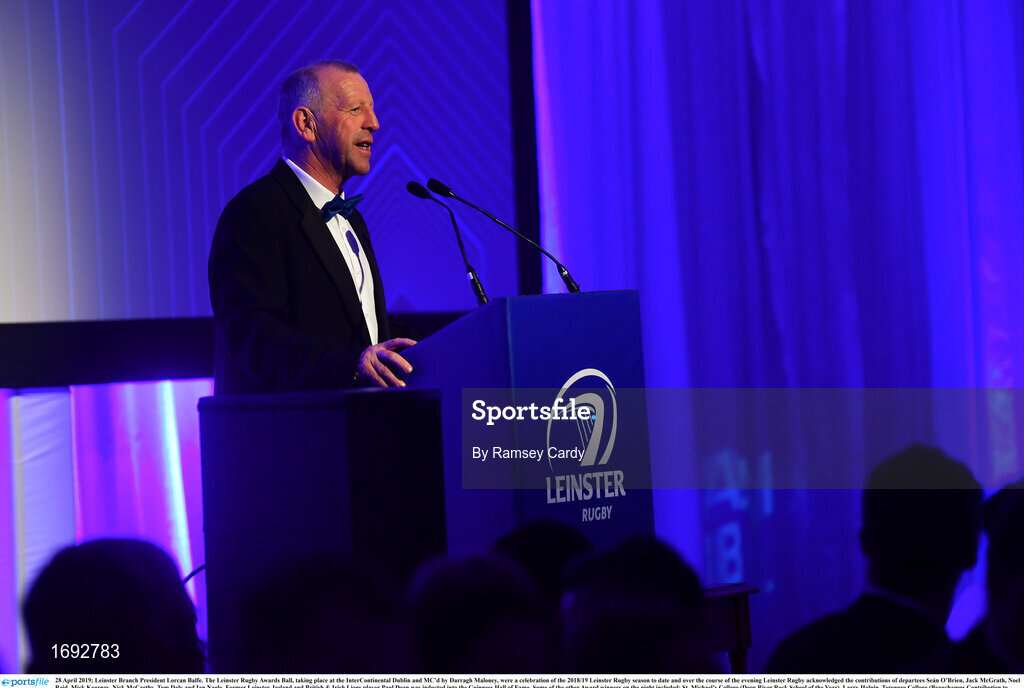28 April 2019; Leinster Branch President Lorcan Balfe. The Leinster Rugby Awards Ball, taking place at the InterContinental Dublin and MC’d by Darragh Maloney, were a celebration of the 2018/19 Leinster Rugby season to date and over the course of the evening Leinster Rugby acknowledged the contributions of departees Seán O’Brien, Jack McGrath, Noel Reid, Mick Kearney, Nick McCarthy, Tom Daly and Ian Nagle. Former Leinster, Ireland and British & Irish Lions player Paul Dean was inducted into the Guinness Hall of Fame. Some of the other Award winners on the night included; St. Michael’s College (Deep River Rock School of the Year), Larry Halpin, Terenure College (Beauchamps Contribution to Leinster Rugby Award), Naas RFC (CityJet Senior Club of the Year), Patrician Secondary School Newbridge (Irish Independent Development School of the Year Award), Suttonians RFC (Bank of Ireland Junior Club of the Year) and Sene Naoupu (Energia Women’s Rugby Award). Photo by Ramsey Cardy/Sportsfile
