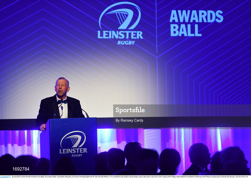 28 April 2019; Leinster Branch President Lorcan Balfe. The Leinster Rugby Awards Ball, taking place at the InterContinental Dublin and MC’d by Darragh Maloney, were a celebration of the 2018/19 Leinster Rugby season to date and over the course of the evening Leinster Rugby acknowledged the contributions of departees Seán O’Brien, Jack McGrath, Noel Reid, Mick Kearney, Nick McCarthy, Tom Daly and Ian Nagle. Former Leinster, Ireland and British & Irish Lions player Paul Dean was inducted into the Guinness Hall of Fame. Some of the other Award winners on the night included; St. Michael’s College (Deep River Rock School of the Year), Larry Halpin, Terenure College (Beauchamps Contribution to Leinster Rugby Award), Naas RFC (CityJet Senior Club of the Year), Patrician Secondary School Newbridge (Irish Independent Development School of the Year Award), Suttonians RFC (Bank of Ireland Junior Club of the Year) and Sene Naoupu (Energia Women’s Rugby Award). Photo by Ramsey Cardy/Sportsfile
