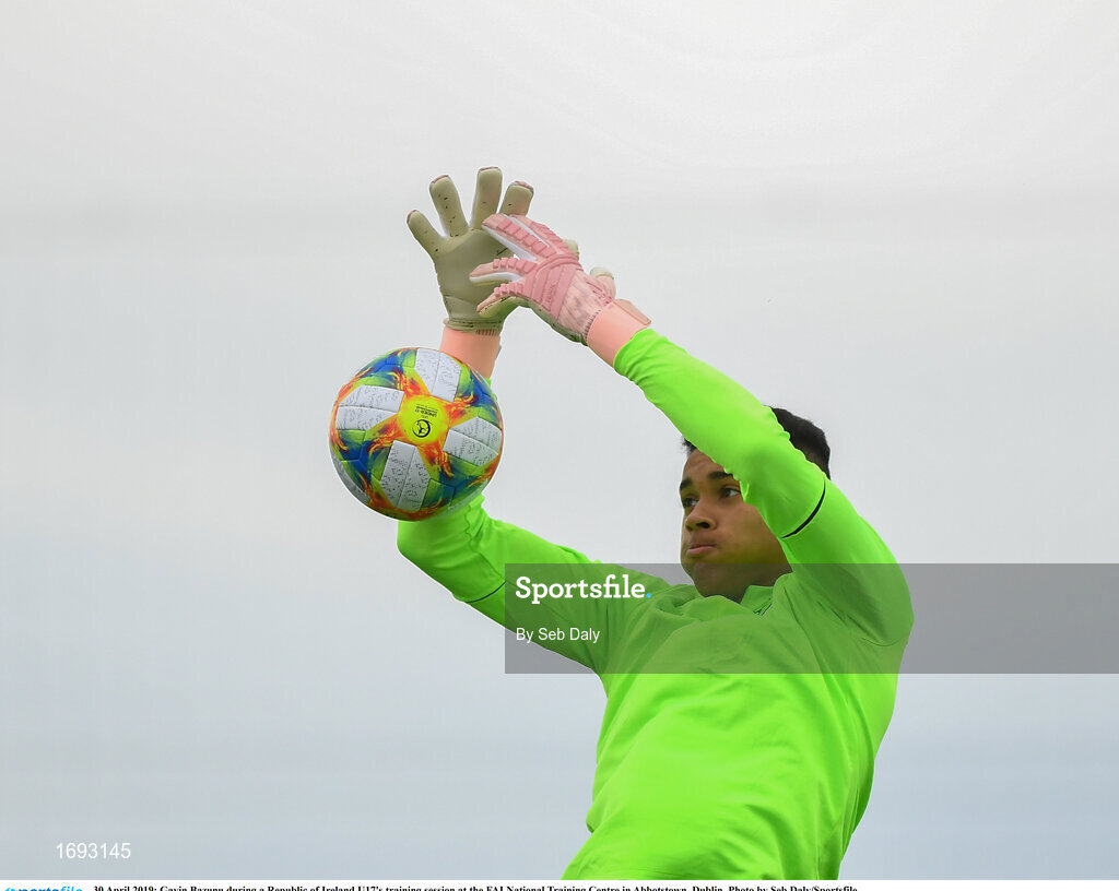 30 April 2019; Gavin Bazunu during a Republic of Ireland U17's training session at the FAI National Training Centre in Abbotstown, Dublin. Photo by Seb Daly/Sportsfile