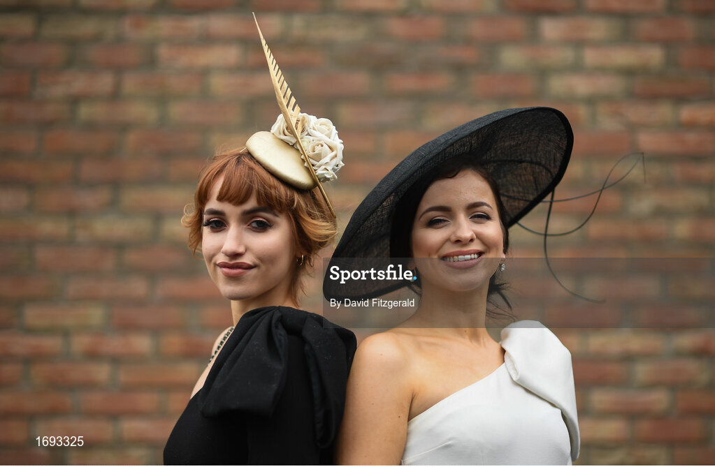 30 April 2019; Racegoers and sisters Roisin, left, and Vivienne O'Connor from Celbridge, Co Kildare, prior to racing during the Punchestown Festival Champion Chase Day at Punchestown Racecourse in Naas, Kildare. Photo by David Fitzgerald/Sportsfile