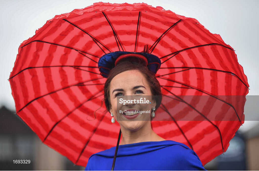 30 April 2019; Racegoer Becky Jackson from Kilteegan, Co Wicklow, prior to racing during the Punchestown Festival Champion Chase Day at Punchestown Racecourse in Naas, Kildare. Photo by David Fitzgerald/Sportsfile