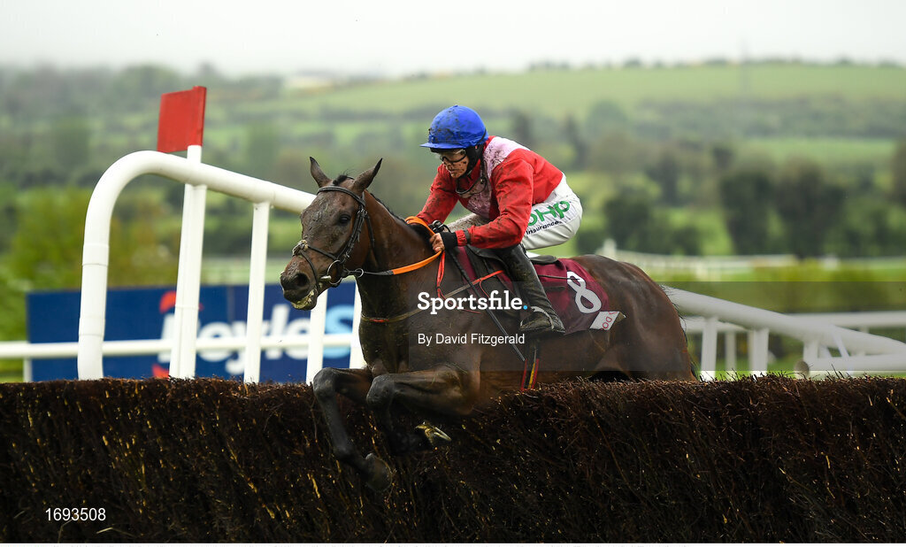 30 April 2019; A Plus Tard, with Rachael Blackmore up, clear the last on their way to finishing second in the Dooley Insurance Group Champion Novice Steeplechase at Punchestown Racecourse in Naas, Kildare. Photo by David Fitzgerald/Sportsfile