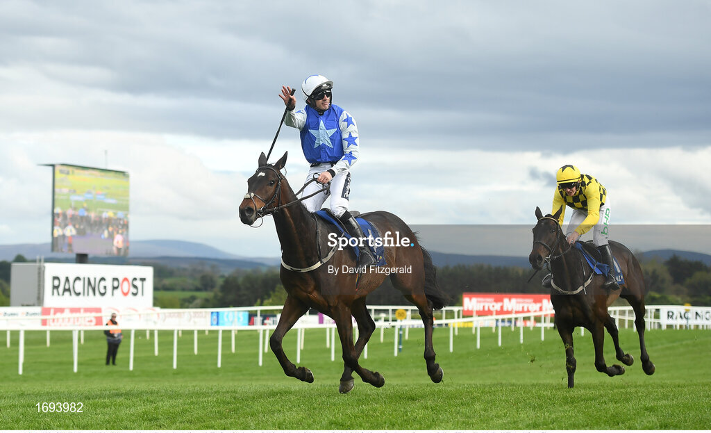 1 May 2019; Kemboy, with Ruby Walsh up, celebrate after crossing the line to win The Coral Punchestown Gold Cup during the Punchestown Festival Gold Cup Day at Punchestown Racecourse in Naas, Kildare. Photo by David Fitzgerald/Sportsfile