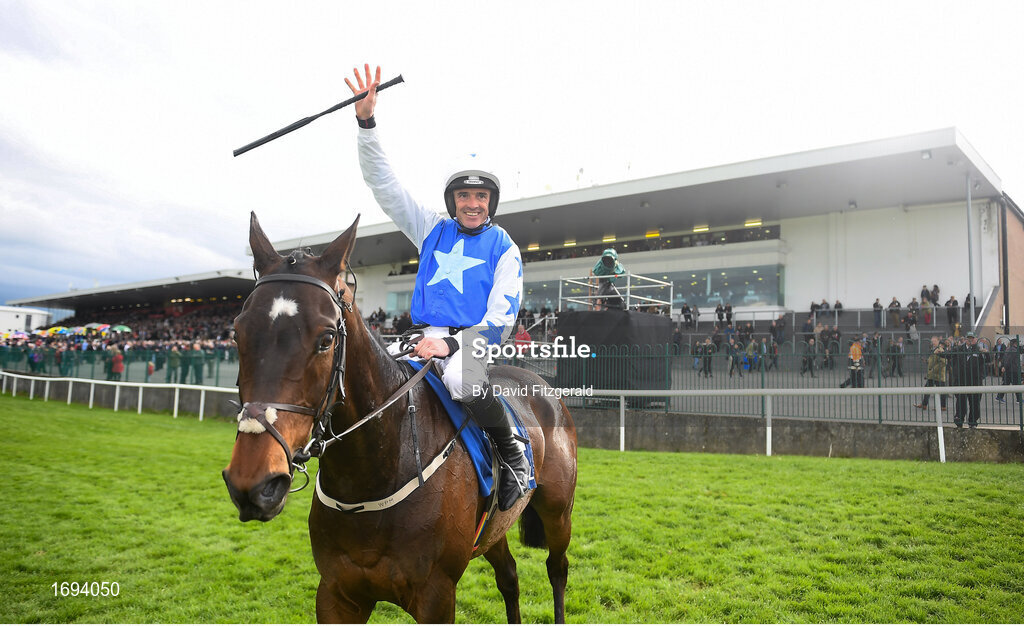 1 May 2019; Ruby Walsh celebrates on Kemboy after winning The Coral Punchestown Gold Cup during the Punchestown Festival Gold Cup Day at Punchestown Racecourse in Naas, Kildare. Photo by David Fitzgerald/Sportsfile