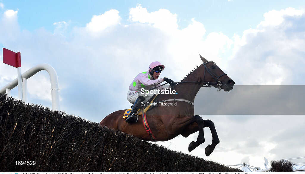 2 May 2019; Chacun Pour Soi, with Robbie Power up, jump the last on their way to winning the Ryanair Novice Steeplechase at Punchestown Racecourse in Naas, Kildare. Photo by David Fitzgerald/Sportsfile