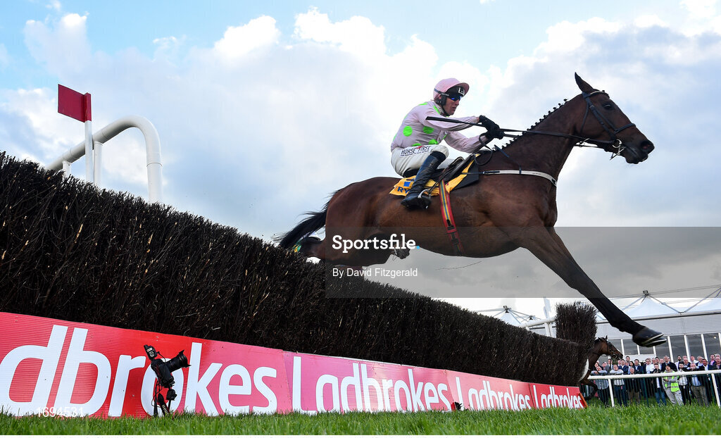 2 May 2019; Chacun Pour Soi, with Robbie Power up, jump the last on their way to winning the Ryanair Novice Steeplechase at Punchestown Racecourse in Naas, Kildare. Photo by David Fitzgerald/Sportsfile