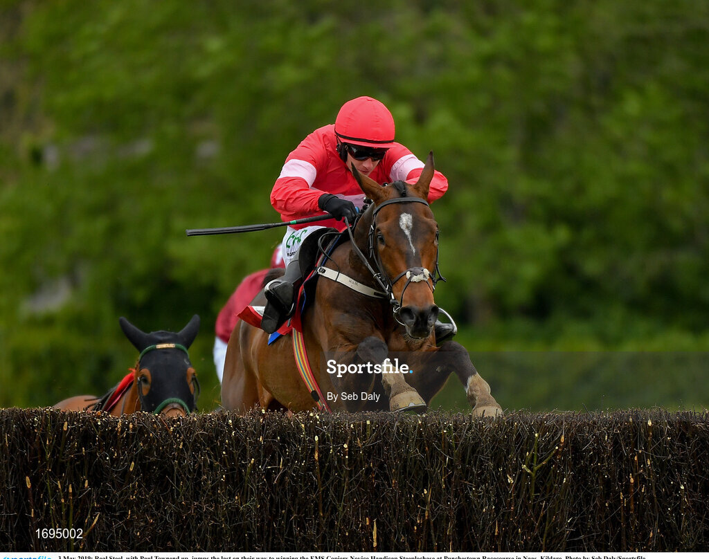 3 May 2019; Real Steel, with Paul Townend up, jumps the last on their way to winning the EMS Copiers Novice Handicap Steeplechase at Punchestown Racecourse in Naas, Kildare. Photo by Seb Daly/Sportsfile