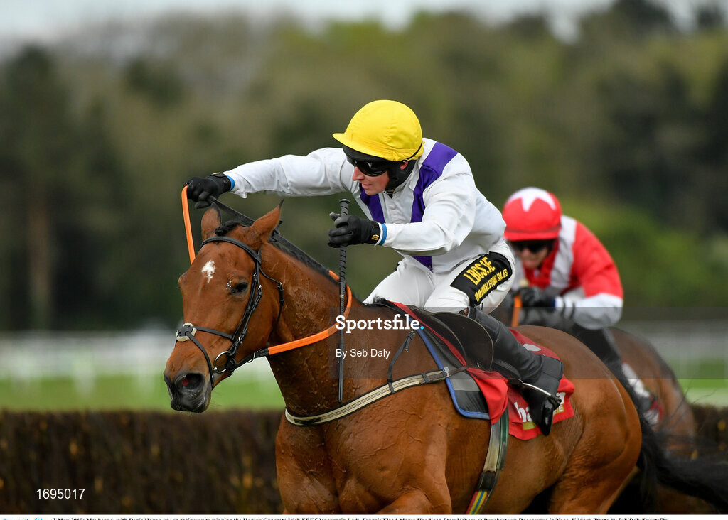 3 May 2019; Moyhenna, with Denis Hogan up, on their way to winning the Hanlon Concrete Irish EBF Glencarraig Lady Francis Flood Mares Handicap Steeplechase at Punchestown Racecourse in Naas, Kildare. Photo by Seb Daly/Sportsfile