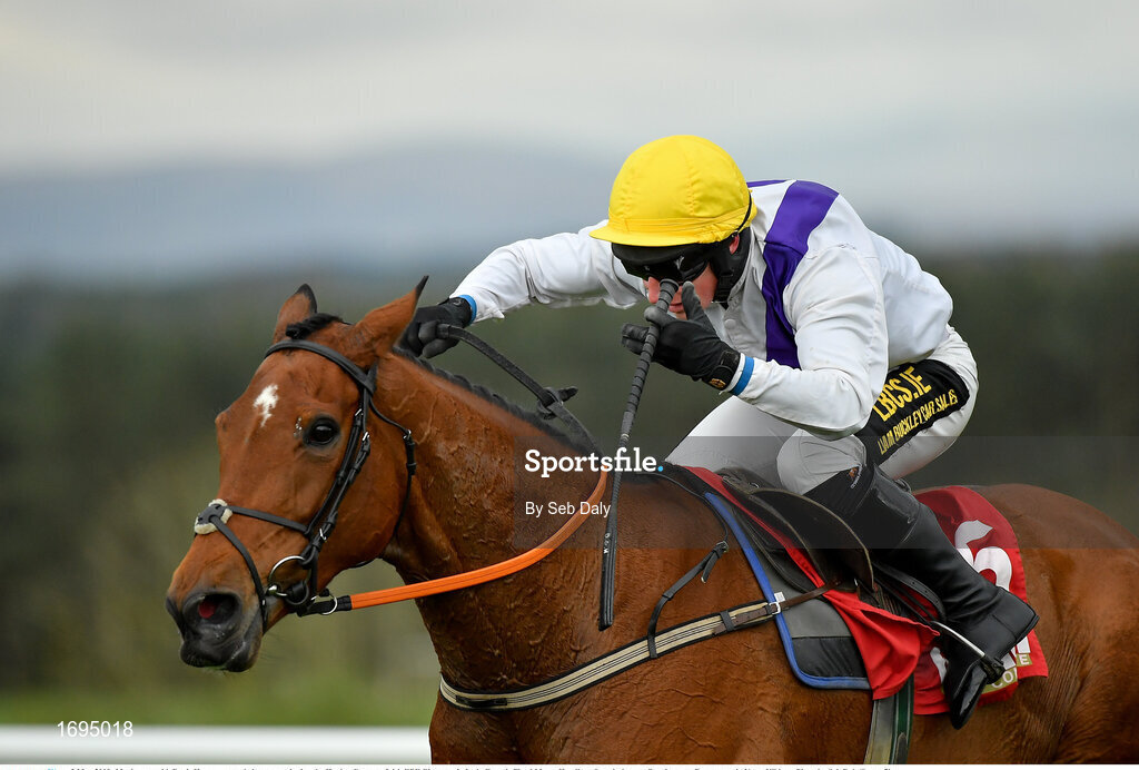 3 May 2019; Moyhenna, with Denis Hogan up, on their way to winning the Hanlon Concrete Irish EBF Glencarraig Lady Francis Flood Mares Handicap Steeplechase at Punchestown Racecourse in Naas, Kildare. Photo by Seb Daly/Sportsfile