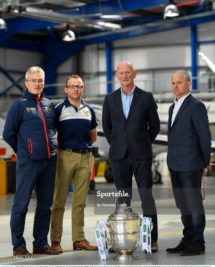 3 May 2019; In attendance, from left, Carlow manager Colm Bonnar, Wexford selector Seoirse Bulfin, Kilkenny manager Brian Cody and Galway manager Micheal Donoghue during the launch of the Leinster GAA Senior Championships at the Casement Aerodrome in Baldonnel, Dublin. Photo by Ramsey Cardy/Sportsfile