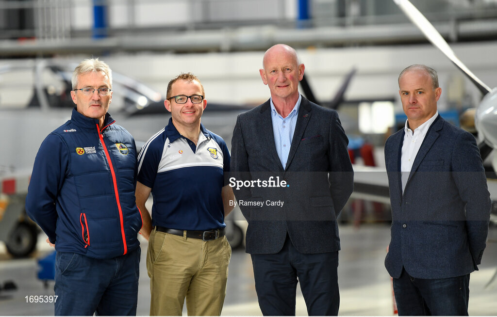 3 May 2019; In attendance, from left, Carlow manager Colm Bonnar, Wexford selector Seoirse Bulfin, Kilkenny manager Brian Cody and Galway manager Micheal Donoghue during the launch of the Leinster GAA Senior Championships at the Casement Aerodrome in Baldonnel, Dublin. Photo by Ramsey Cardy/Sportsfile