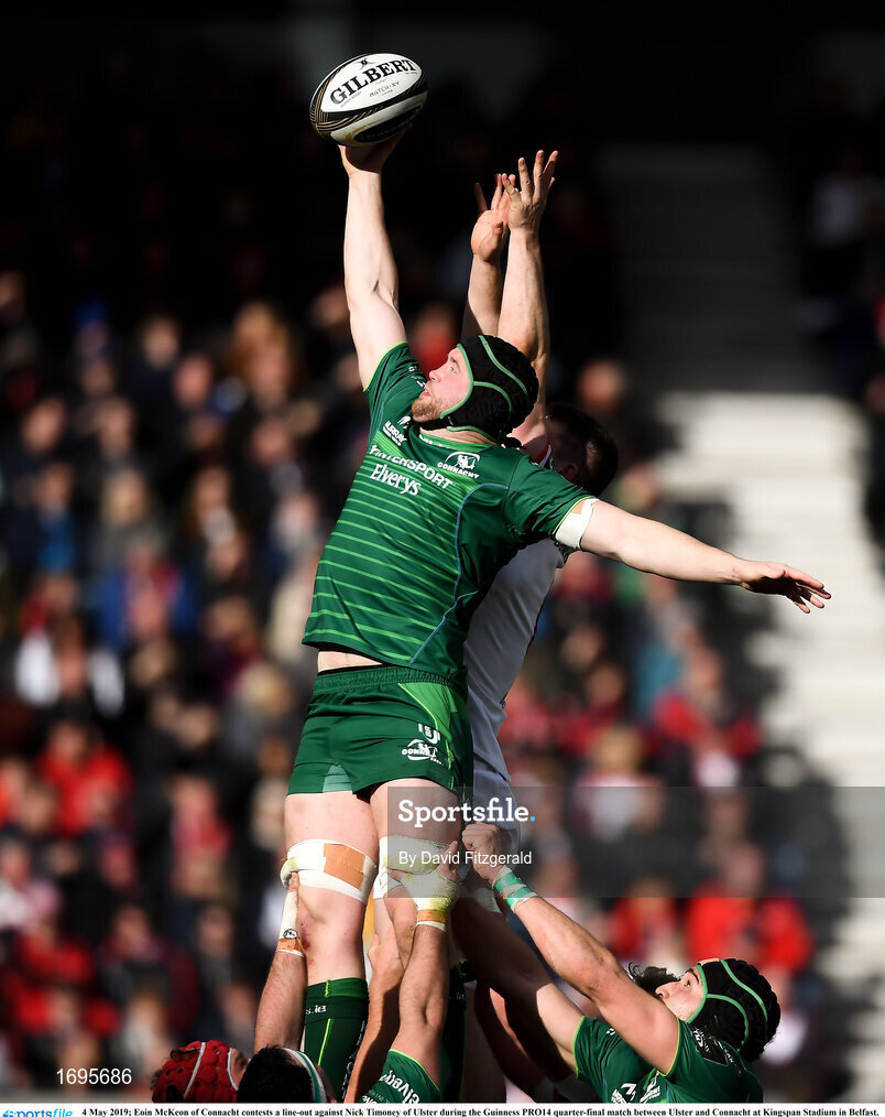 4 May 2019; Eoin McKeon of Connacht contests a line-out against Nick Timoney of Ulster during the Guinness PRO14 quarter-final match between Ulster and Connacht at Kingspan Stadium in Belfast. Photo by David Fitzgerald/Sportsfile