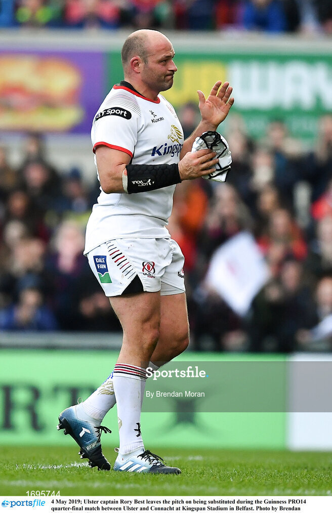 4 May 2019; Ulster captain Rory Best leaves the pitch after being substituted during the Guinness PRO14 quarter-final match between Ulster and Connacht at Kingspan Stadium in Belfast. Photo by Brendan Moran/Sportsfile