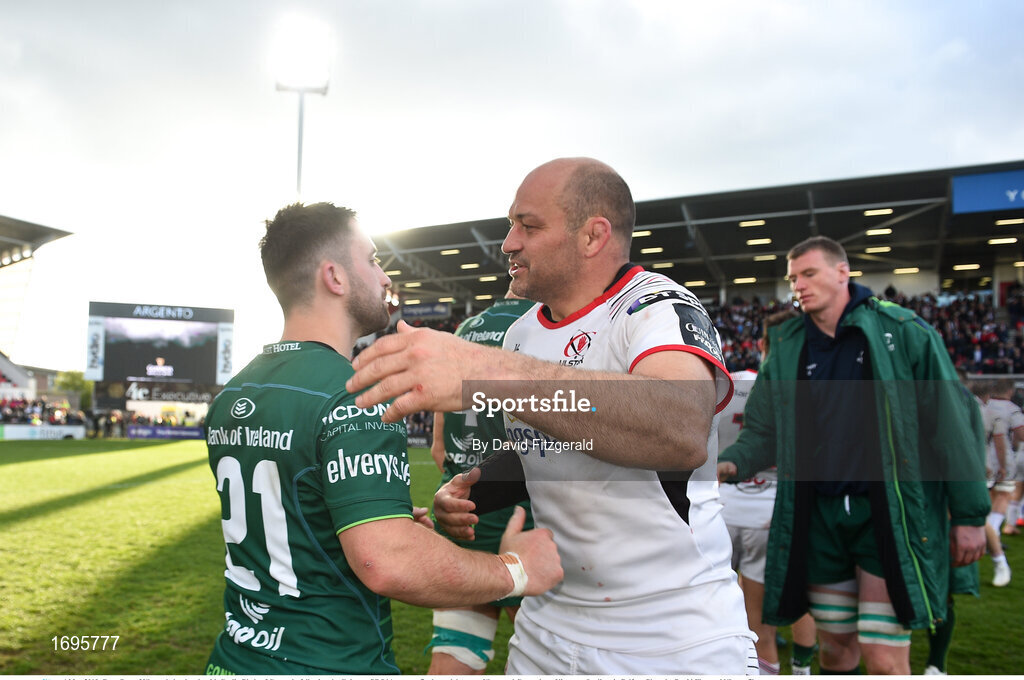 4 May 2019; Rory Best of Ulster shakes hands with Caolin Blade of Connacht following the Guinness PRO14 quarter-final match between Ulster and Connacht at Kingspan Stadium in Belfast. Photo by David Fitzgerald/Sportsfile
