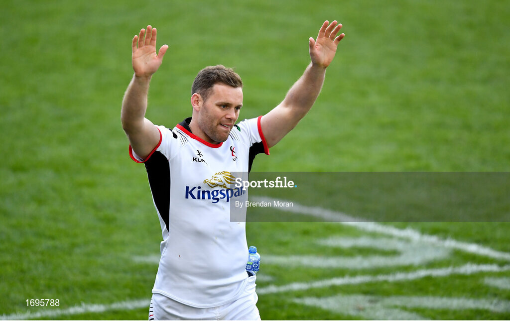 4 May 2019; An emotional Darren Cave acknowledges the crowd's applause having played his final home game after the Guinness PRO14 quarter-final match between Ulster and Connacht at Kingspan Stadium in Belfast. Photo by Brendan Moran/Sportsfile