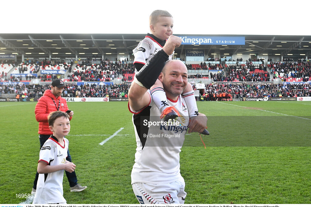 4 May 2019; Rory Best of Ulster with his son Richie following the Guinness PRO14 quarter-final match between Ulster and Connacht at Kingspan Stadium in Belfast. Photo by David Fitzgerald/Sportsfile