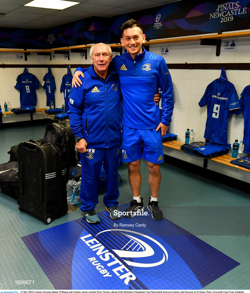 11 May 2019; Leinster kit man Johnny O'Hagan and Leinster sports scientist Peter Tierney ahead of the Heineken Champions Cup Final match between Leinster and Saracens at St James' Park, Newcastle Upon Tyne, England. Photo by Ramsey Cardy/Sportsfile