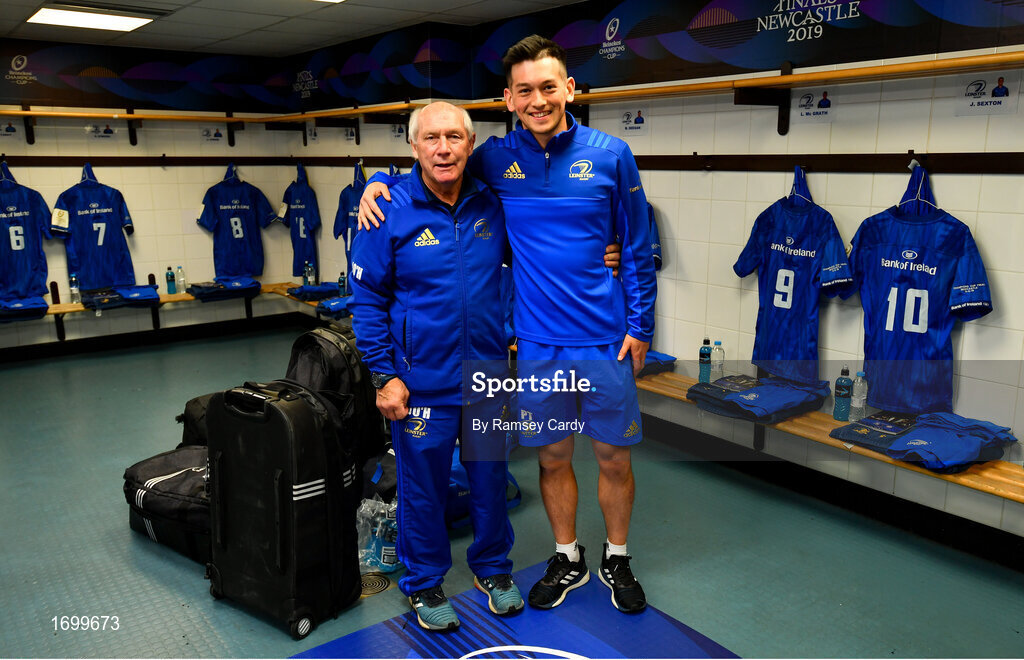 11 May 2019; Leinster kit man Johnny O'Hagan and Leinster sports scientist Peter Tierney ahead of the Heineken Champions Cup Final match between Leinster and Saracens at St James' Park, Newcastle Upon Tyne, England. Photo by Ramsey Cardy/Sportsfile