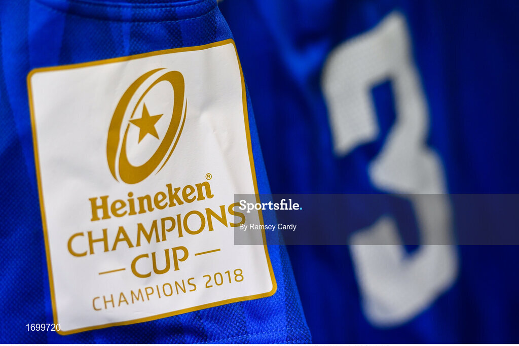 11 May 2019; The jersey of Tadhg Furlong hangs in the Leinster dressing room ahead of the Heineken Champions Cup Final match between Leinster and Saracens at St James' Park, Newcastle Upon Tyne, England. Photo by Ramsey Cardy/Sportsfile