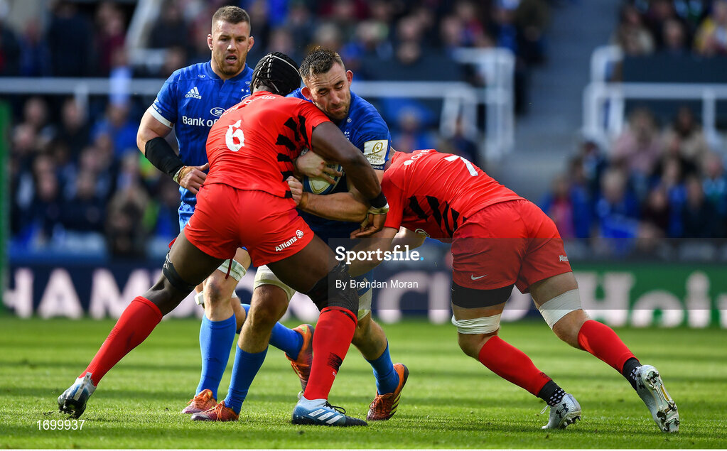 11 May 2019; Jack Conan of Leinster is tackled by Maro Itoje and Jackson Wray of Saracens during the Heineken Champions Cup Final match between Leinster and Saracens at St James' Park in Newcastle Upon Tyne, England. Photo by Brendan Moran/Sportsfile