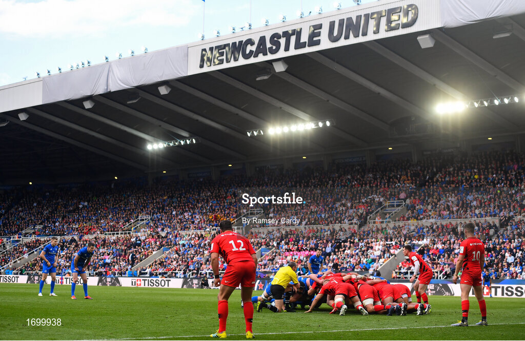 11 May 2019; A general view of a scrum during the Heineken Champions Cup Final match between Leinster and Saracens at St James' Park in Newcastle Upon Tyne, England. Photo by Ramsey Cardy/Sportsfile