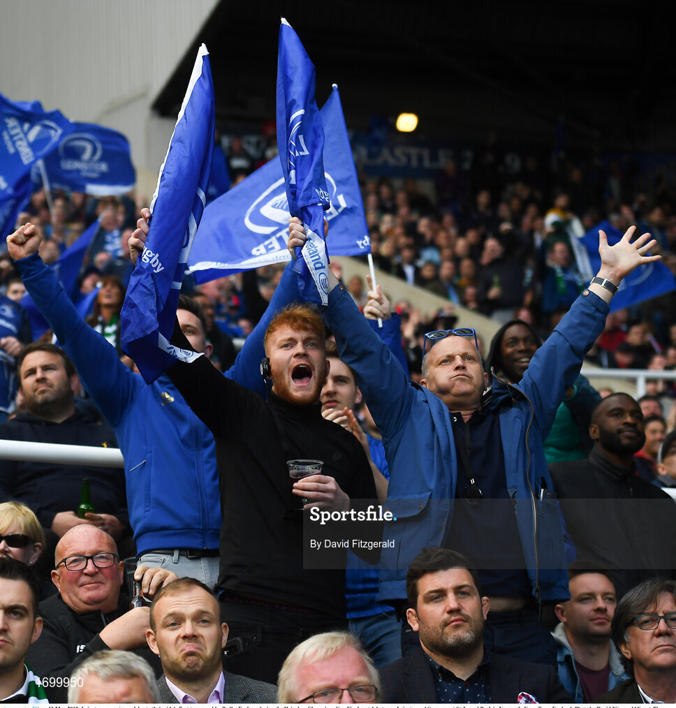 11 May 2019; Leinster supporters celebrate their side's first try scored by Tadhg Furlong during the Heineken Champions Cup Final match between Leinster and Saracens at St James' Park in Newcastle Upon Tyne, England. Photo by David Fitzgerald/Sportsfile