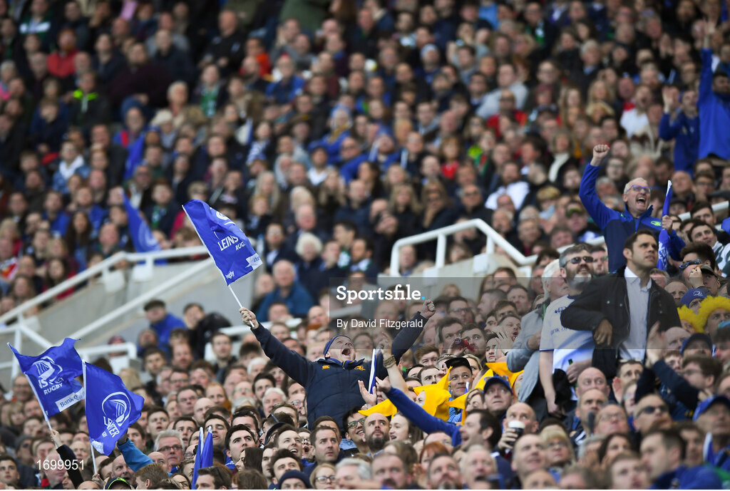 11 May 2019; Leinster supporters react during the Heineken Champions Cup Final match between Leinster and Saracens at St James' Park in Newcastle Upon Tyne, England. Photo by David Fitzgerald/Sportsfile