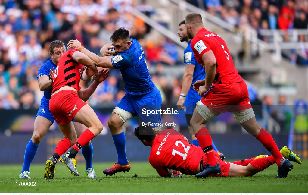11 May 2019; Jack Conan of Leinster is tackled by Owen Farrell of Saracens during the Heineken Champions Cup Final match between Leinster and Saracens at St James' Park in Newcastle Upon Tyne, England. Photo by Ramsey Cardy/Sportsfile