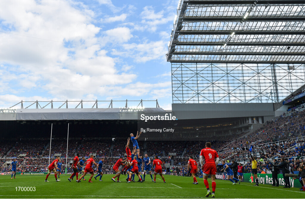 11 May 2019; Devin Toner of Leinster wins possession in the lineout during the Heineken Champions Cup Final match between Leinster and Saracens at St James' Park in Newcastle Upon Tyne, England. Photo by Ramsey Cardy/Sportsfile