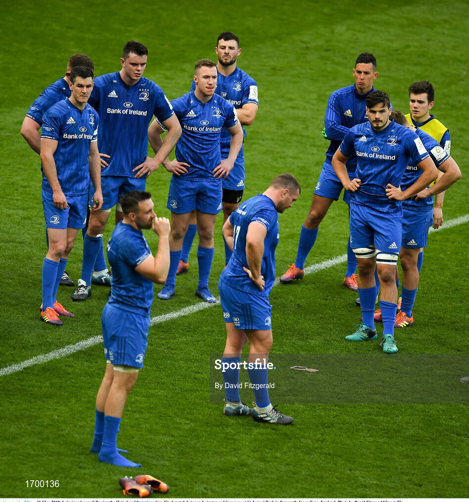 11 May 2019; Leinster players following the Heineken Champions Cup Final match between Leinster and Saracens at St James' Park in Newcastle Upon Tyne, England. Photo by David Fitzgerald/Sportsfile