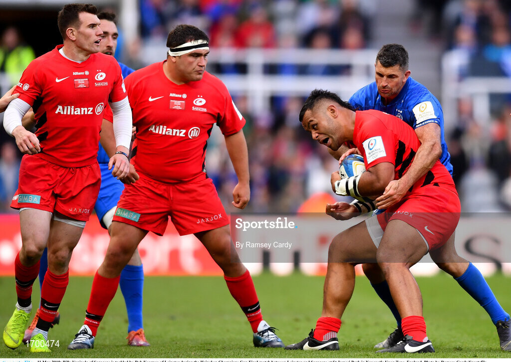 11 May 2019; Billy Vunipola of Saracens is tackled by Rob Kearney of Leinster during the Heineken Champions Cup Final match between Leinster and Saracens at St James' Park in Newcastle Upon Tyne, England. Photo by Ramsey Cardy/Sportsfile