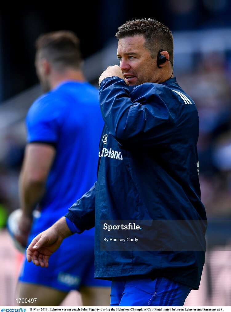 11 May 2019; Leinster scrum coach John Fogarty during the Heineken Champions Cup Final match between Leinster and Saracens at St James' Park in Newcastle Upon Tyne, England. Photo by Ramsey Cardy/Sportsfile