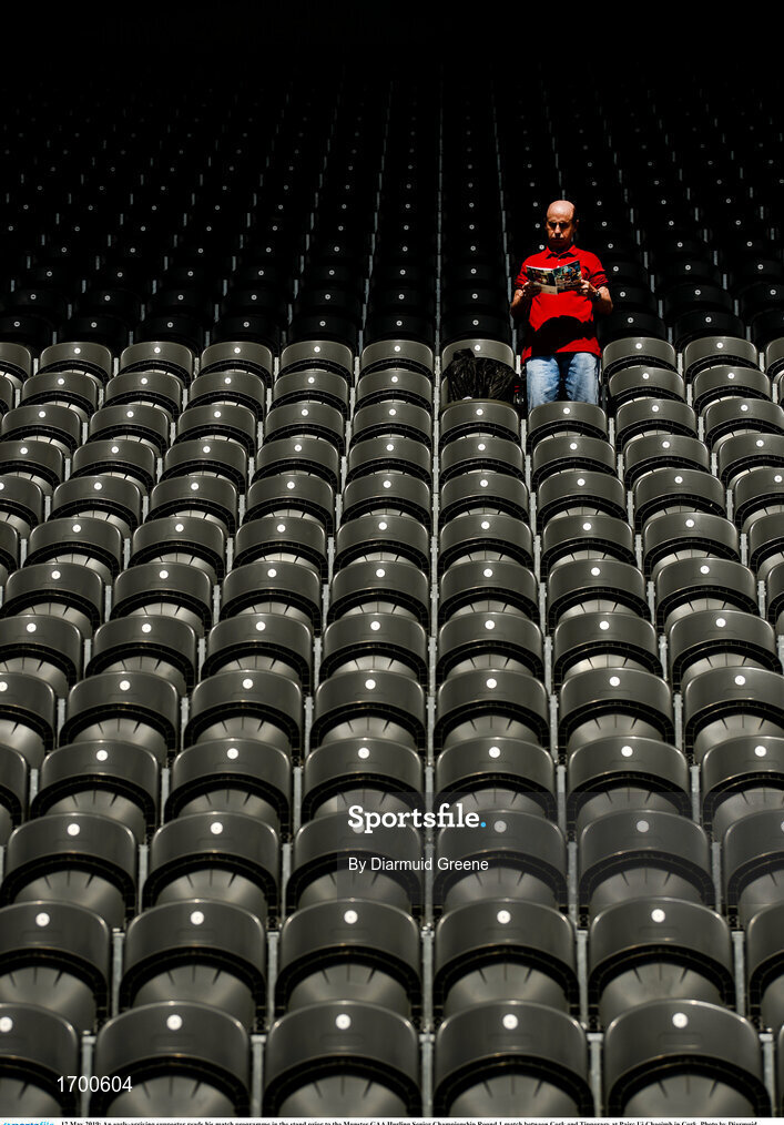 12 May 2019; An early-arriving supporter reads his match programme in the stand prior to the Munster GAA Hurling Senior Championship Round 1 match between Cork and Tipperary at Pairc Ui Chaoimh in Cork. Photo by Diarmuid Greene/Sportsfile