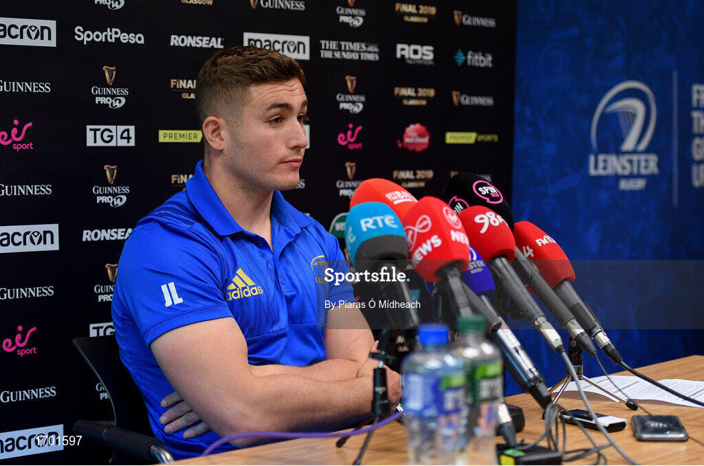 13 May 2019; Jordan Larmour during a Leinster Rugby Press Conference at Leinster Rugby Headquarters in UCD, Dublin. Photo by Piaras Ó Mídheach/Sportsfile