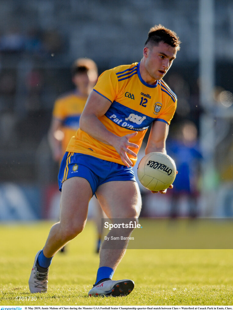 11 May 2019; Jamie Malone of Clare during the Munster GAA Football Senior Championship quarter-final match between Clare v Waterford at Cusack Park in Ennis, Clare. Photo by Sam Barnes/Sportsfile