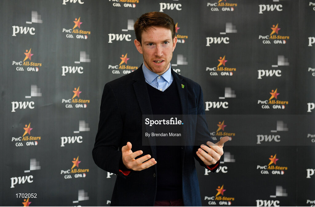14 May 2018; Sean O'Shea of Kerry and Aaron Gillane of Limerick have been voted as the PwC GAA/GPA Players of the Month for April in football and hurling respectively. Pictured is Seamus Hickey, Chairman, GPA, at the PwC GAA/GPA Player of the Month Awards at a reception in the PwC Offices, Cork. Photo by Brendan Moran/Sportsfile