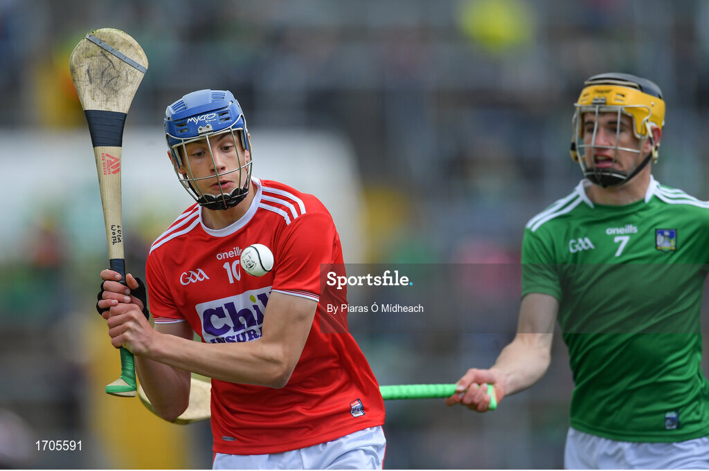 19 May 2019; Colin Walsh of Cork in action against Colin Coughlan of Limerick during the Electric Ireland Munster Minor Hurling Championship match between Limerick and Cork at the LIT Gaelic Grounds in Limerick. Photo by Piaras Ó Mídheach/Sportsfile