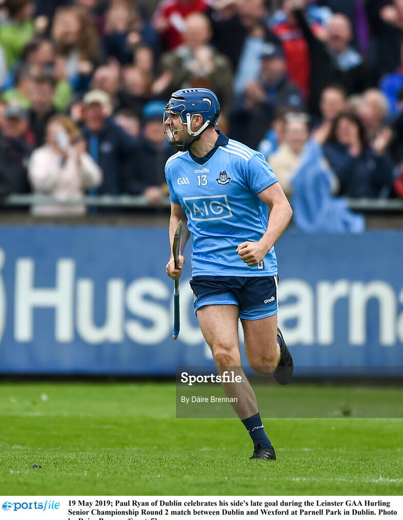 19 May 2019; Paul Ryan of Dublin celebrates his side's late goal during the Leinster GAA Hurling Senior Championship Round 2 match between Dublin and Wexford at Parnell Park in Dublin. Photo by Daire Brennan/Sportsfile