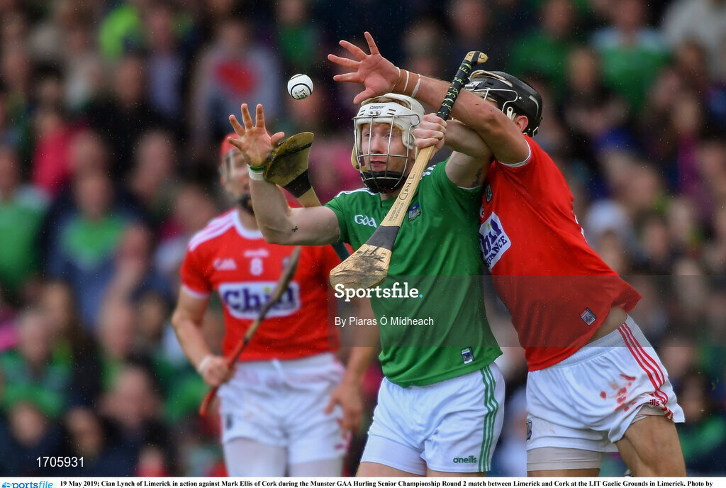 19 May 2019; Cian Lynch of Limerick in action against Mark Ellis of Cork during the Munster GAA Hurling Senior Championship Round 2 match between Limerick and Cork at the LIT Gaelic Grounds in Limerick. Photo by Piaras Ó Mídheach/Sportsfile