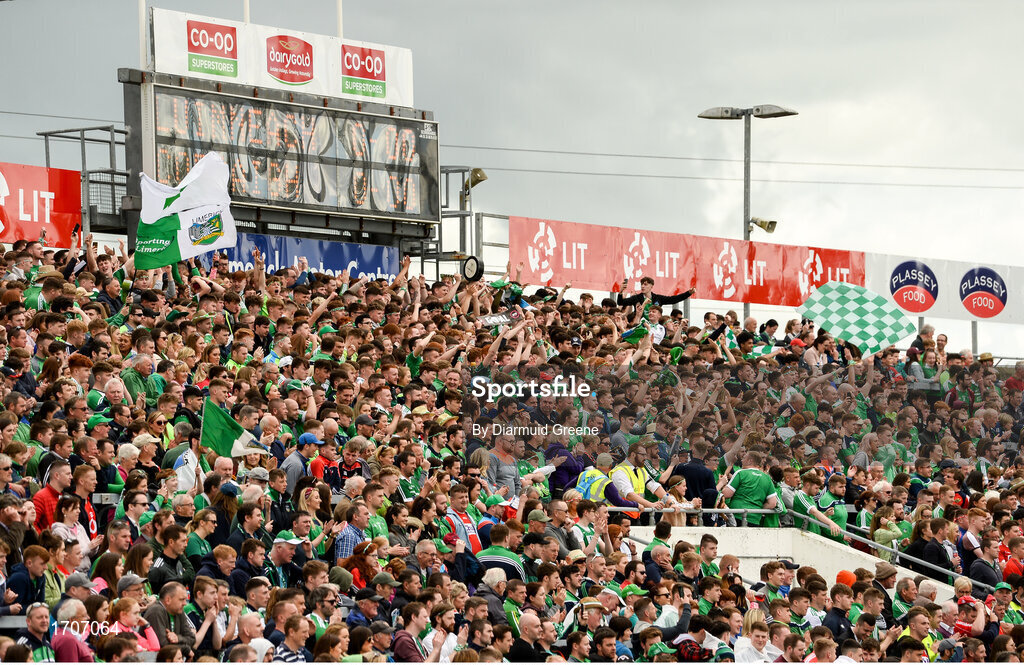19 May 2019; Spectators in the city end terrace during the Munster GAA Hurling Senior Championship Round 2 match between Limerick and Cork at the LIT Gaelic Grounds in Limerick. Photo by Diarmuid Greene/Sportsfile