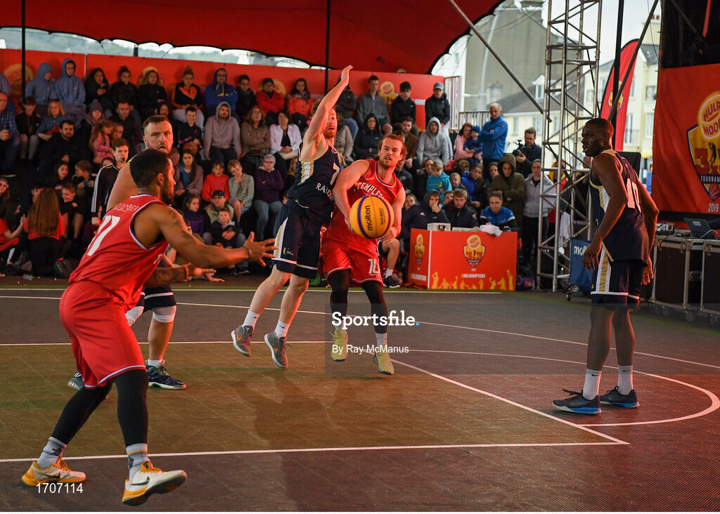 18 May 2019; Stephen James of Templeogue Basketball Club in action against Shane O’Connor of Ulster University Elks Basketball during the Mens Final between Ulster University Elks Basketball and Templeogue Basketball Club at the second annual Hula Hoops 3x3 Basketball Championships at Bray Seafront in Co.Wicklow. Photo by Ray McManus/Sportsfile