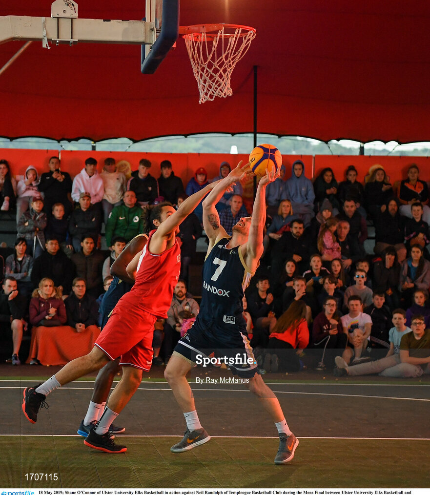 18 May 2019; Shane O’Connor of Ulster University Elks Basketball in action against Neil Randolph of Templeogue Basketball Club during the Mens Final between Ulster University Elks Basketball and Templeogue Basketball Club at the second annual Hula Hoops 3x3 Basketball Championships at Bray Seafront in Co.Wicklow. Photo by Ray McManus/Sportsfile