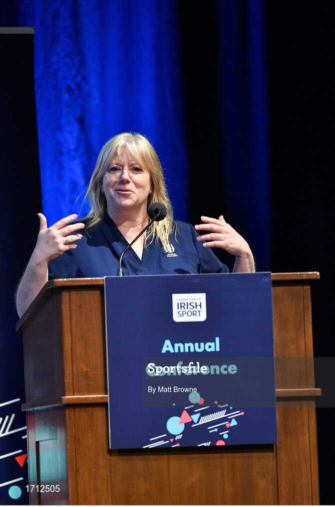 23 May 2019; Katie Sadleir, World Rugby's General Manager for Women's Rugby pictured at the Federation of Irish Sport Annual Conference 2019, The Helix, Dublin City University, Dublin. Photo by Matt Browne/Sportsfile