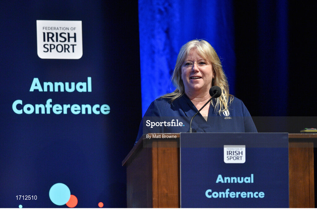 23 May 2019; Katie Sadlier, World Rugby's General Manager for Women's Rugby pictured at the Federation of Irish Sport Annual Conference 2019, The Helix, Dublin City University, Dublin. Photo by Matt Browne/Sportsfile