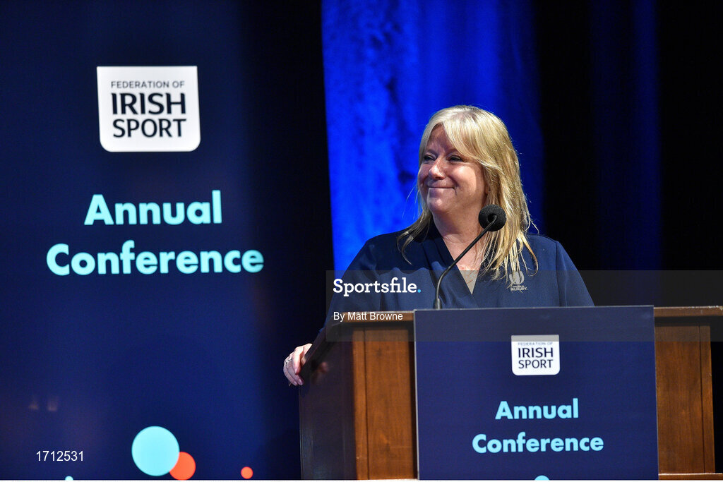 23 May 2019; Katie Sadlier, World Rugby's General Manager for Women's Rugby pictured at the Federation of Irish Sport Annual Conference 2019, The Helix, Dublin City University, Dublin. Photo by Matt Browne/Sportsfile