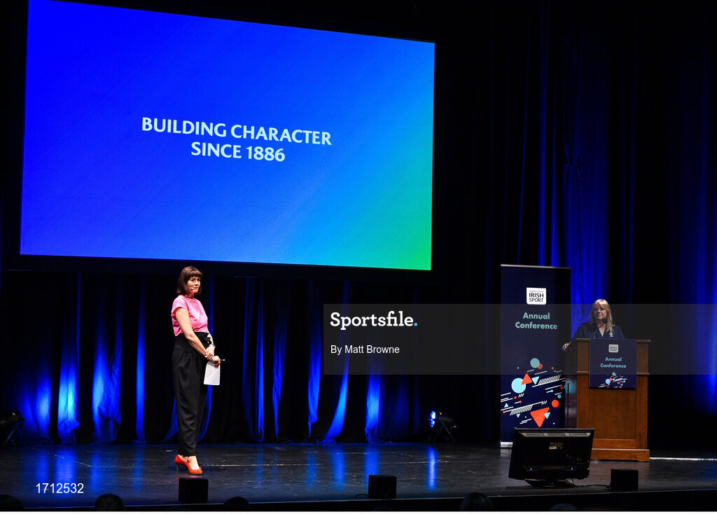 23 May 2019; Katie Sadlier, World Rugby's General Manager for Women's Rugby with Presenter Grainne McElwain pictured at the Federation of Irish Sport Annual Conference 2019, The Helix, Dublin City University, Dublin. Photo by Matt Browne/Sportsfile