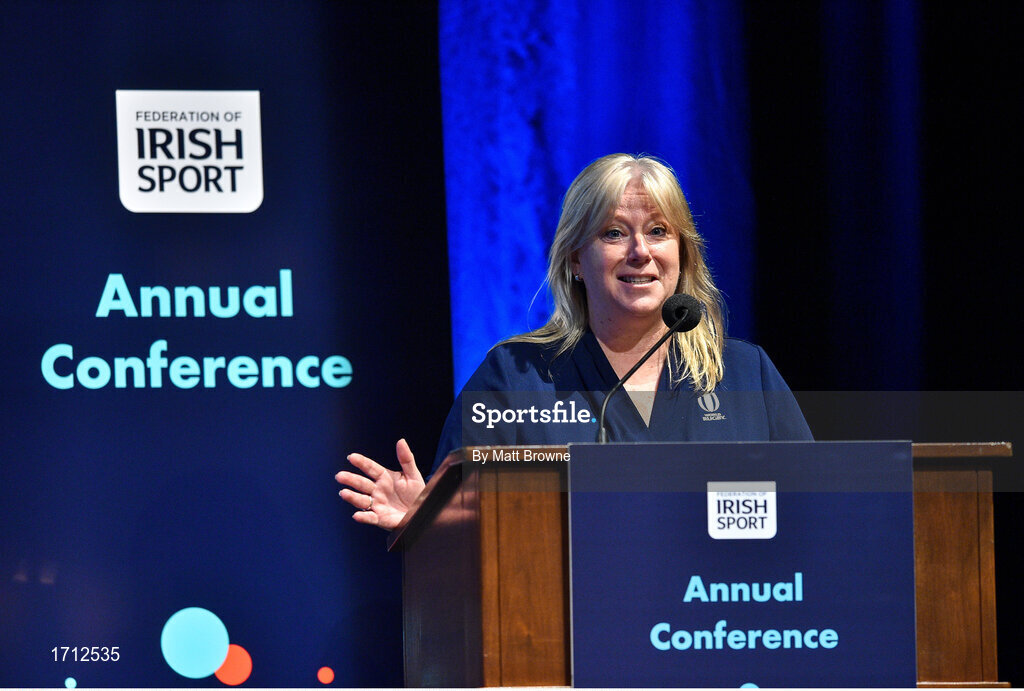 23 May 2019; Katie Sadlier, World Rugby's General Manager for Women's Rugby pictured at the Federation of Irish Sport Annual Conference 2019, The Helix, Dublin City University, Dublin. Photo by Matt Browne/Sportsfile