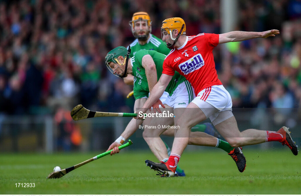 19 May 2019; William O'Donoghue of Limerick in action against Niall O'Leary of Cork during the Munster GAA Hurling Senior Championship Round 2 match between Limerick and Cork at the LIT Gaelic Grounds in Limerick. Photo by Piaras Ó Mídheach/Sportsfile